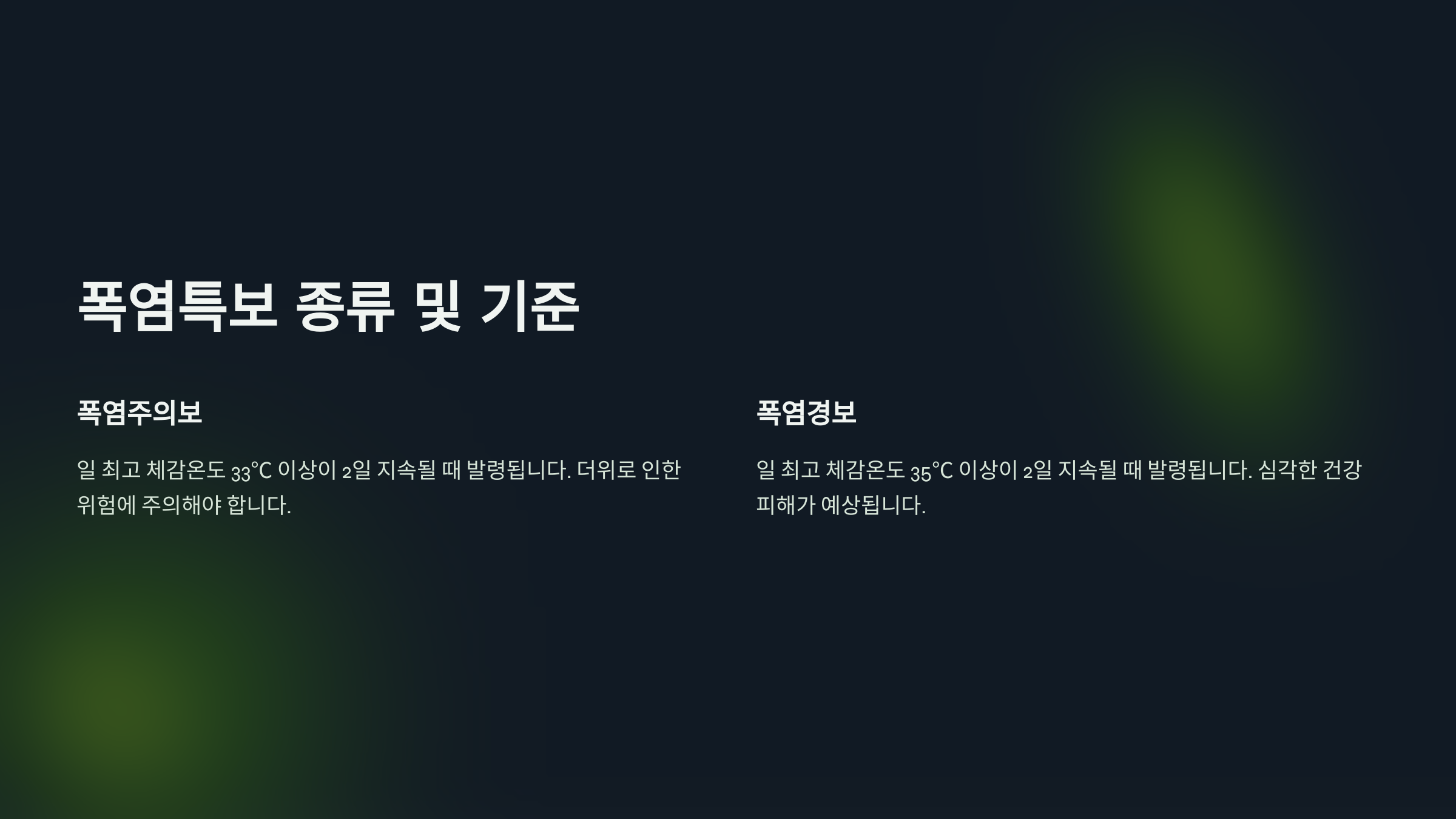 폭염은 단순히 더운 날씨가 아니라 건강과 생명을 위협하는 위험 요소예요. 특히 폭염특보가 발령되면 더위로 인한 질환을 예방하기 위해 더욱 신경 써야 해요. 🌡️🔥