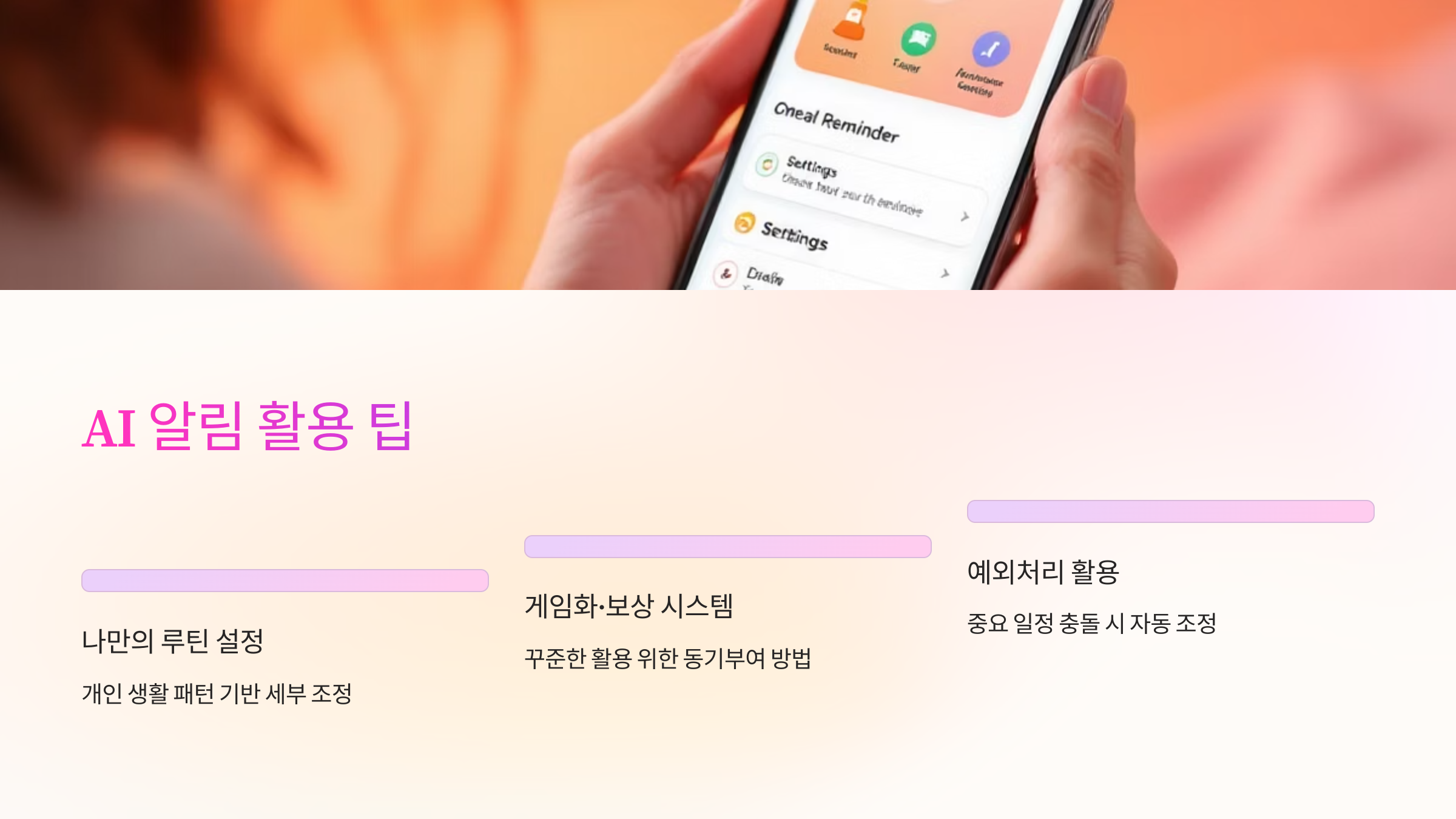 AI 알림 시스템을 제대로 활용하려면 단순히 ‘알람 설정’에 그치지 말고 일상 속 루틴 전체를 연결하는 방식으로 접근하는 게 좋아요.