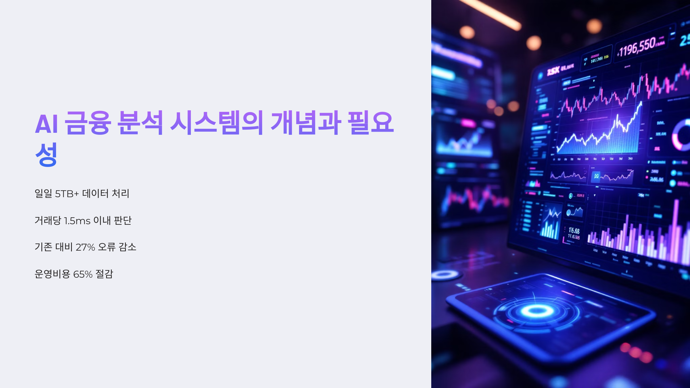 AI는 기존의 인간 중심 금융 분석 방식을 빠르게 대체하며, 예측 정확도와 실시간 대응력에서 새로운 패러다임을 만들어가고 있어요.