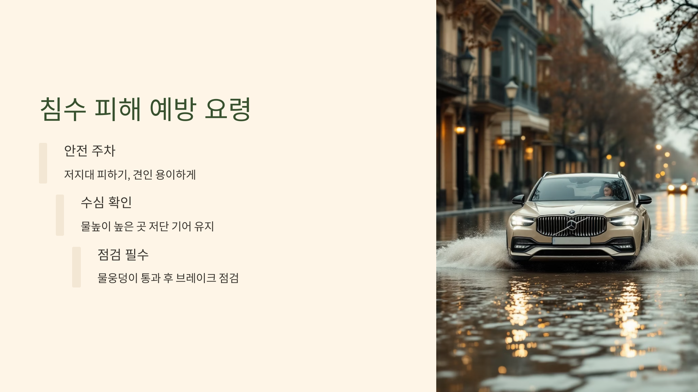 자동차 침수 피해는 막을 수 없을 때도 있지만, 대처 방법에 따라 보상 여부와 범위가 완전히 달라져요. 미리 알고 있으면 훨씬 든든하죠.