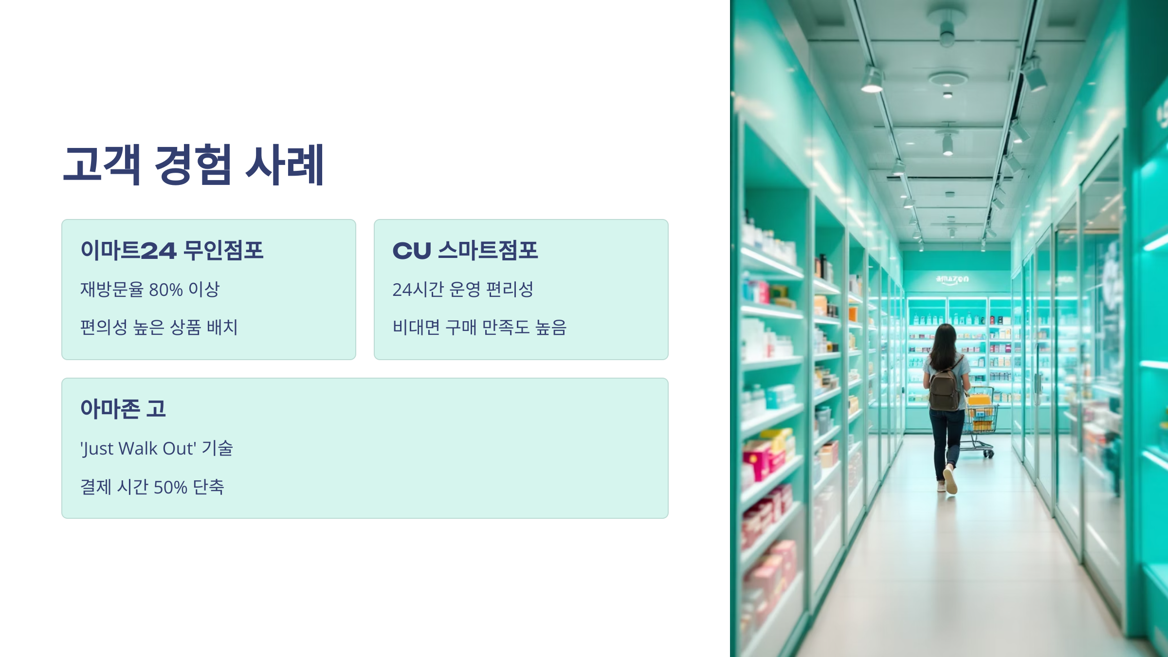 무인 점포는 단순히 인건비를 줄이는 수준을 넘어, 고객 경험의 질과 방향을 완전히 바꿔놓고 있어요. 기술이 더해지면서 매장의 개념 자체가 바뀌고 있는 느낌이랄까요?