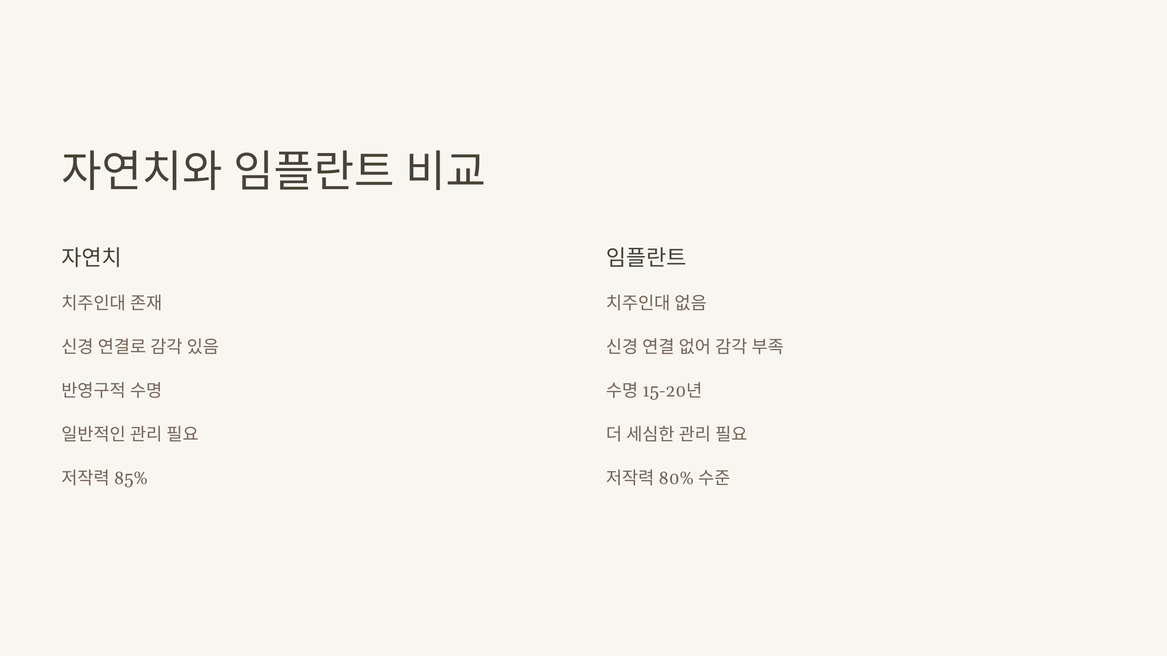 🦷 자연치와 임플란트 비교
