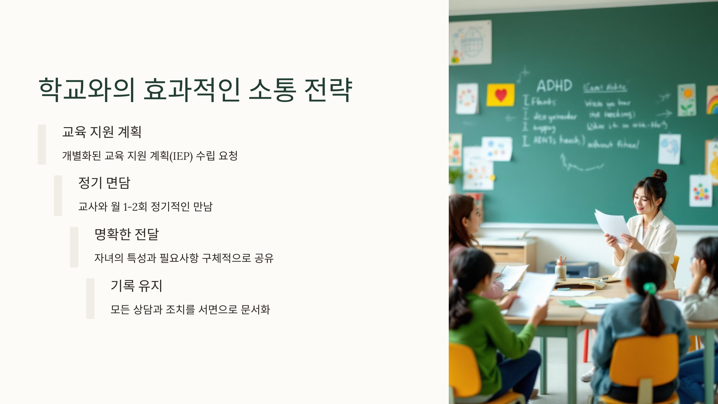 오늘은 자녀의 ADHD 진단 후, 학교와 어떻게 연계하고, 학부모가 꼭 실천해야 할 3가지에 대해 구체적으로 알려드릴게요. 아이도, 부모도 덜 힘들 수 있는 방법이 있어요. 함께 살펴볼까요? 🏫💡
