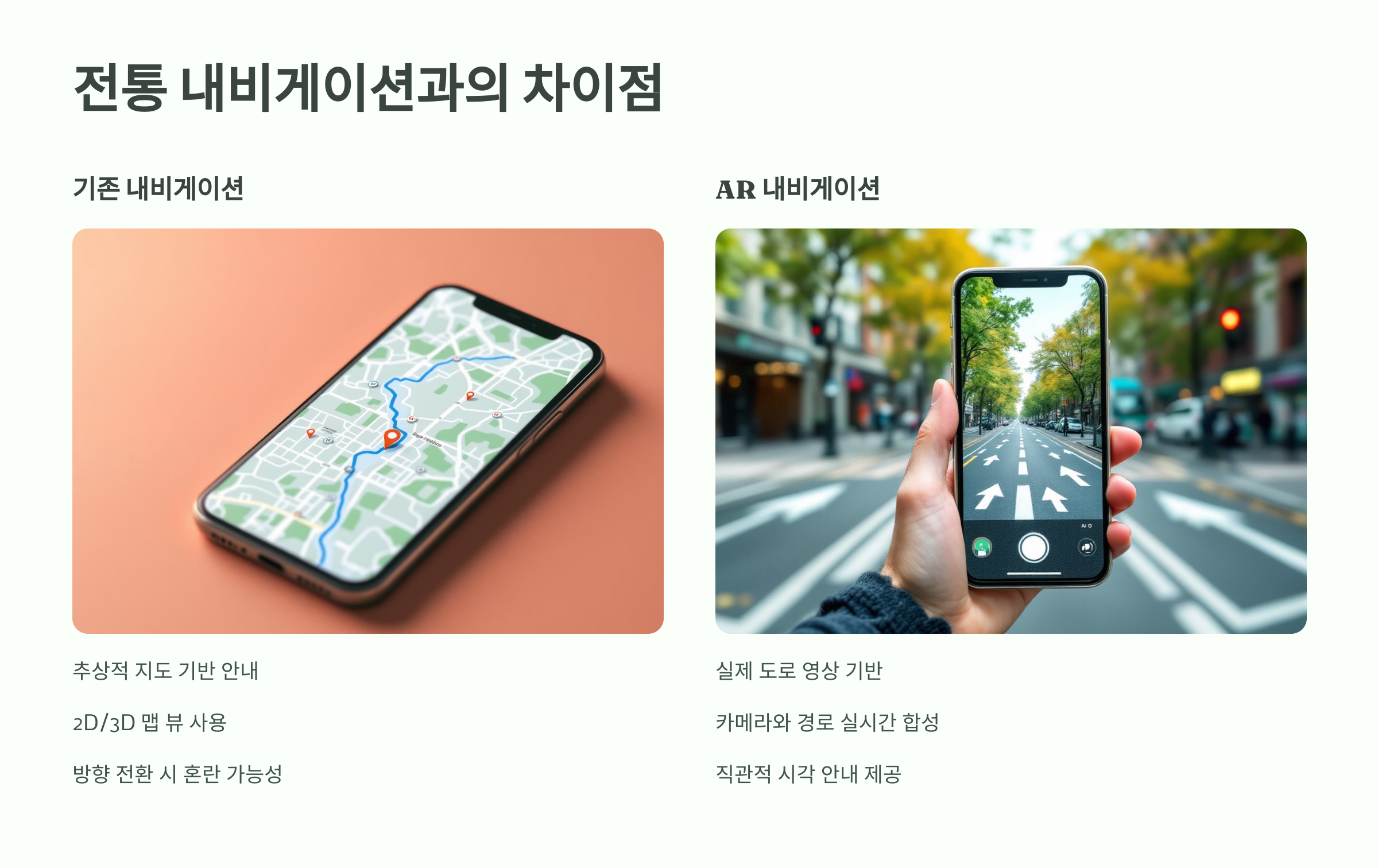 | 직관성 | 지도 해석 필요 | 직관적 방향 안내 |