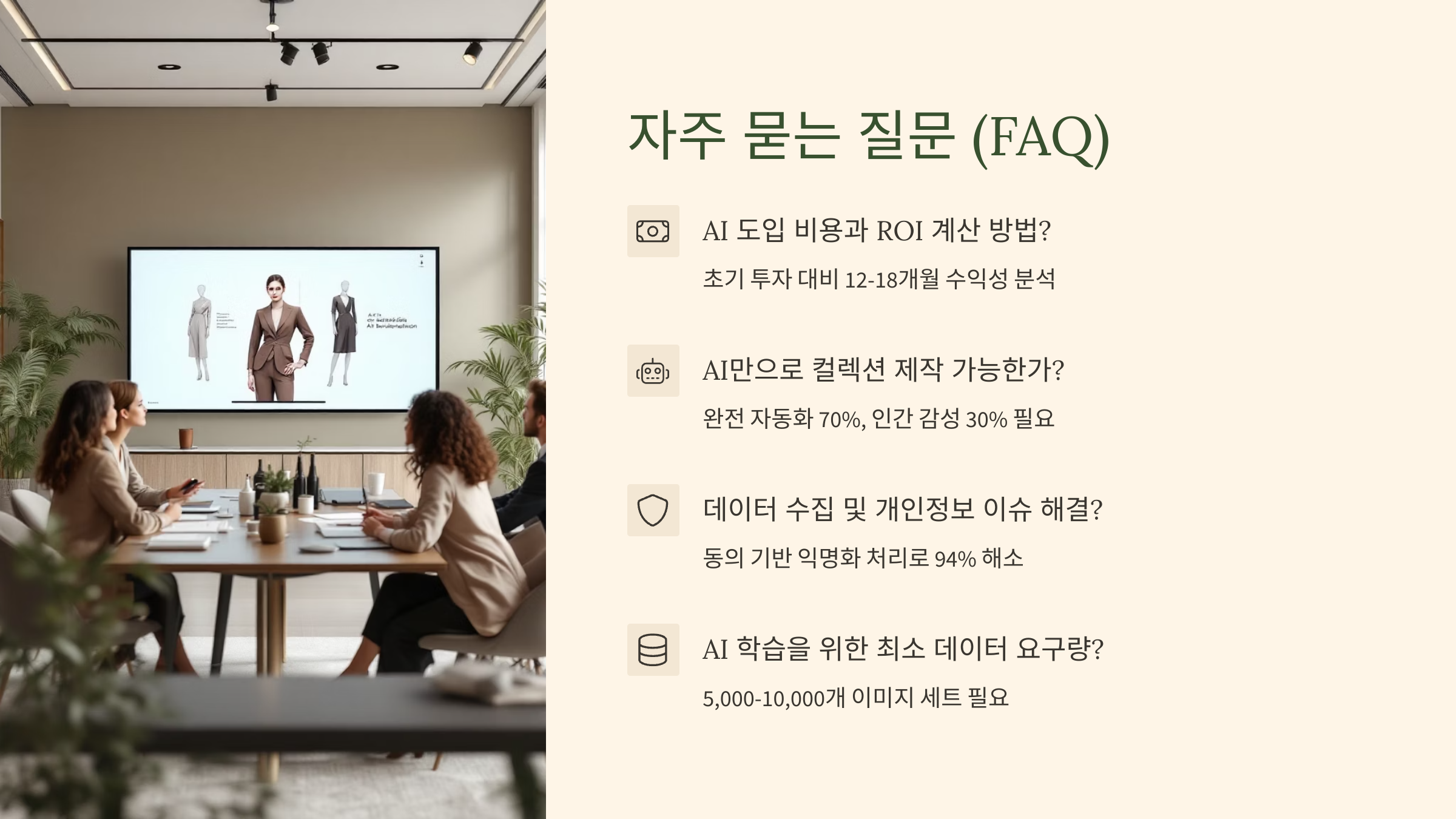 A2. 아니에요. AI는 도구일 뿐, 브랜드 철학, 창의적 감성, 문화 해석은 여전히 사람의 영역이에요. AI는 반복 업무를 줄여주는 ‘어시스턴트’ 역할로 봐야 해요.