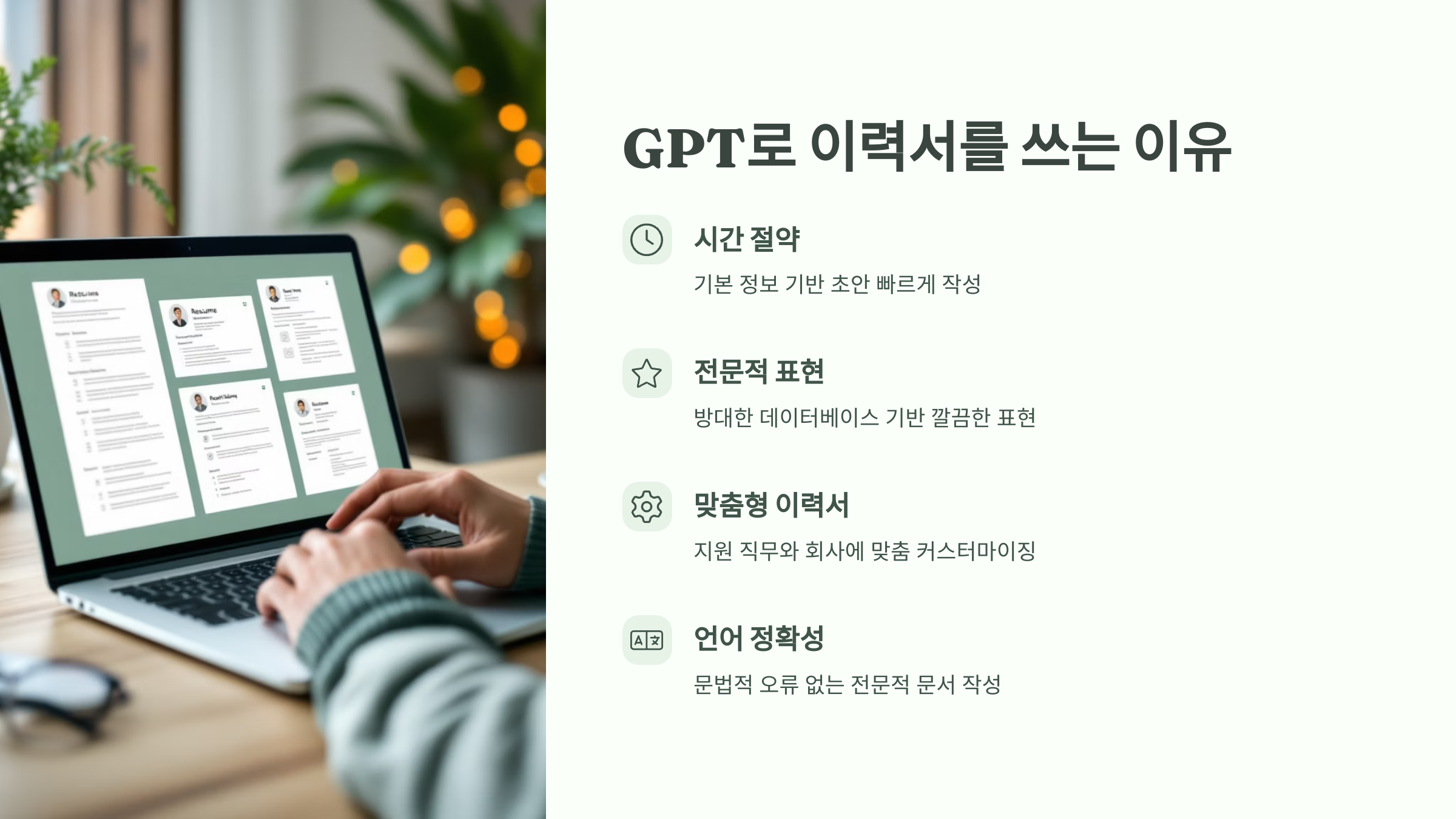GPT는 입력된 경력, 직무, 희망 분야 등을 바탕으로 문맥에 맞는 이력서 항목을 완성도 높게 구성해줘요. 특히 형식이나 흐름에 익숙하지 않은 분들에겐 큰 도움이 되죠.