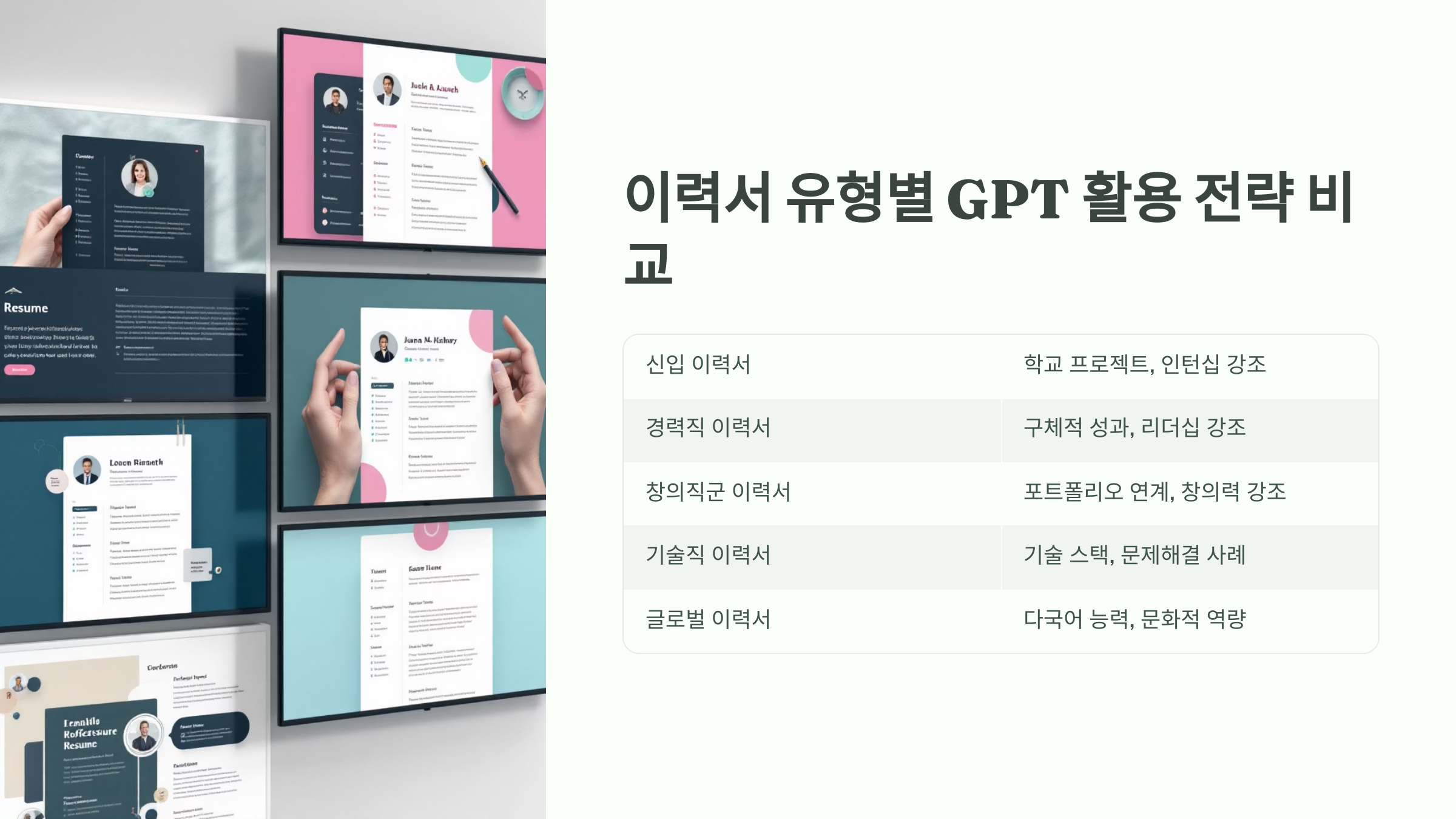 이력서와 자기소개서의 경계가 모호한 해외 스타일에도 활용 가능해요. 특히 GPT는 두 영역의 문체를 통일성 있게 유지하는 데 효과적이에요.