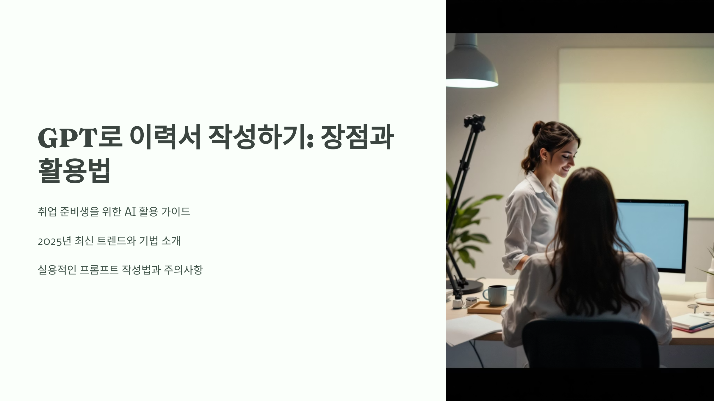 이력서를 처음부터 끝까지 직접 작성하는 건 생각보다 많은 에너지를 요구해요. 특히 처음 쓰는 사람이라면 어떻게 써야 할지조차 막막한 경우가 많아요. 이럴 때 GPT를 활용하면 전체 틀부터 문장까지 빠르게 잡을 수 있어요.