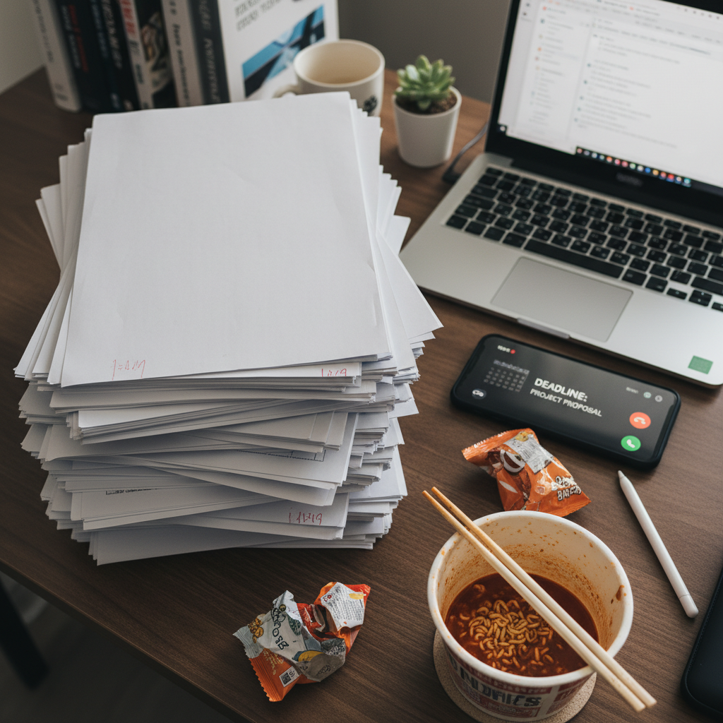 - 1. 만성적인 미루기 (Procrastination): 단순히 하기 싫어서 미루는 것이 아닙니다. 과제의 시작 버튼이 고장 난 것처럼, 마감 직전까지 뇌가 시동을 걸지 못합니다.