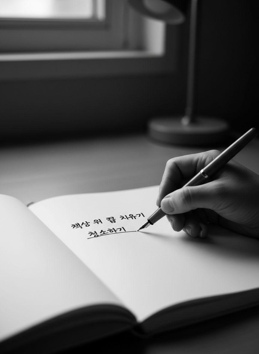 둘째, '외부 저장 장치'를 신뢰하세요. 내 머리를 믿지 마십시오. 할 일은 무조건 스마트폰 알림이나 메모장에 즉시 기록해야 합니다. 이때 중요한 것은 '포괄적인 목표'가 아니라 '당장 할 행동'을 적는 것입니다. "청소하기"가 아니라 "책상 위 컵 치우기"라고 적어야 뇌가 움직입니다.