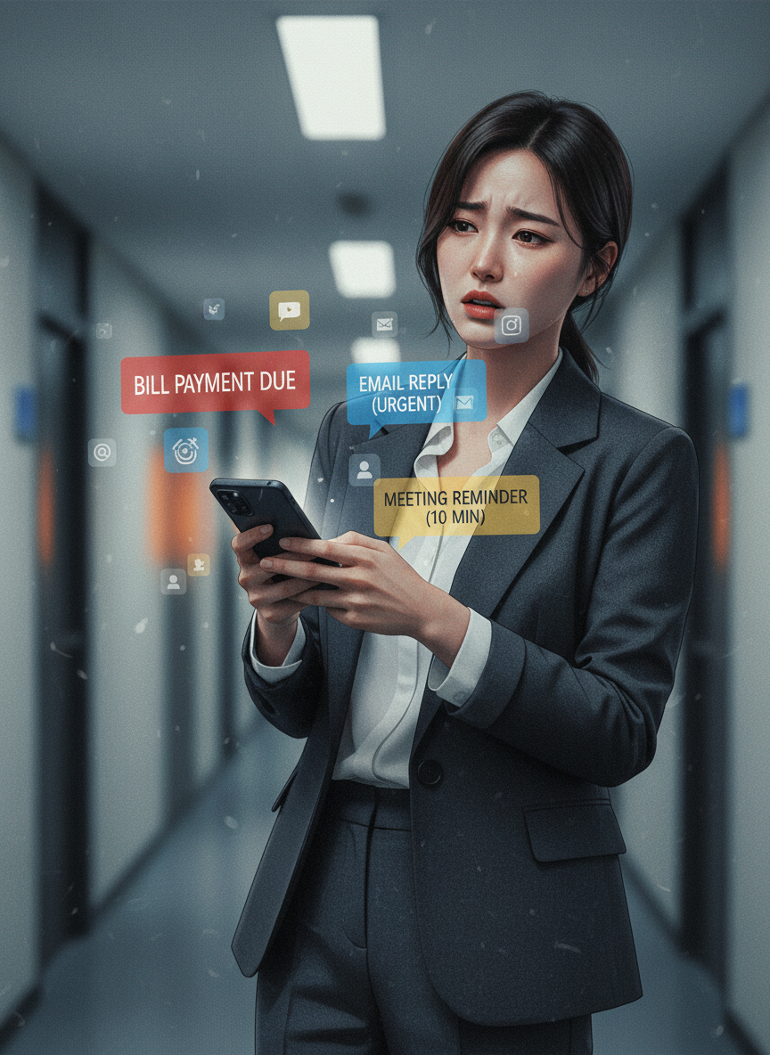 중요한 약속을 잊는 수준을 넘어, 약속 장소에 가기 위해 준비하는 과정 자체를 체계적으로 수행하지 못합니다. 샤워하다가 화장실 청소를 하고, 그러다 갑자기 빨래를 돌리러 나가는 식이죠. 결과적으로 아무것도 제대로 끝내지 못한 채 에너지만 고갈됩니다. 이것이 바로 성인 ADHD가 겪는 '만성적인 비효율'의 핵심입니다.